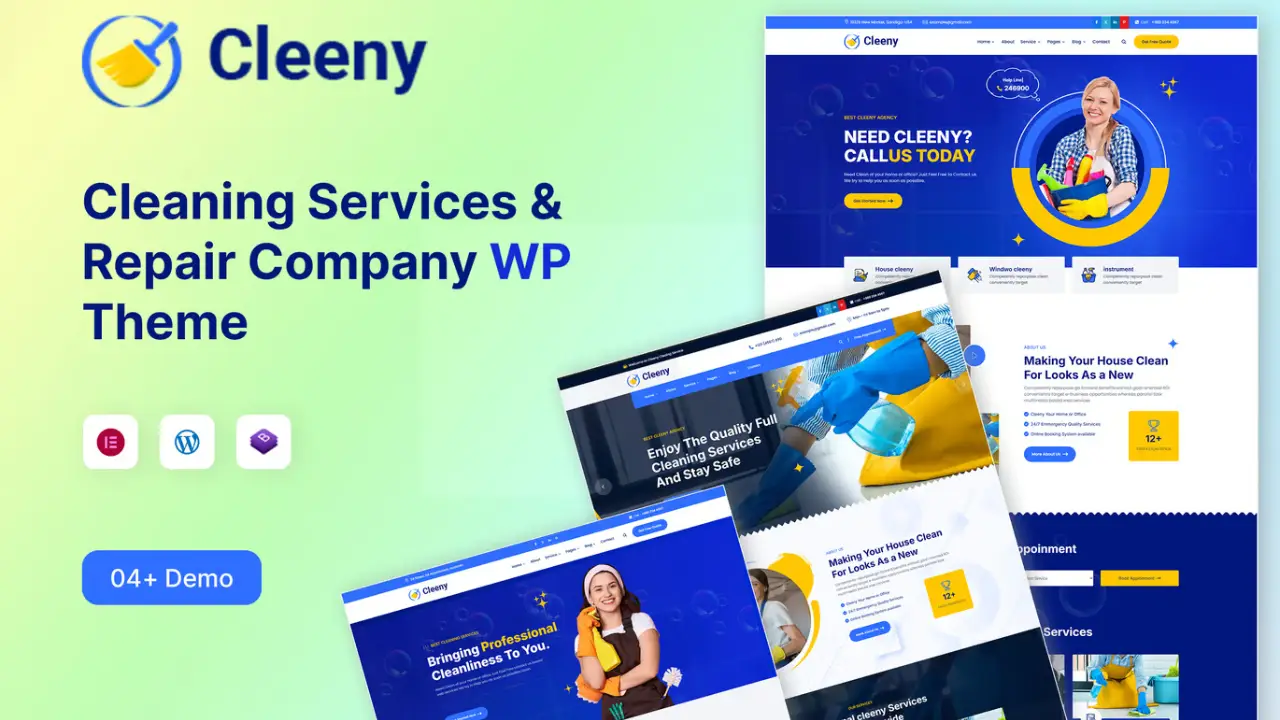 Tidy up your online presence with Cleeny, the ultimate WordPress theme designed for cleaning companies, janitorial services, and home maintenance professionals. Whether you offer residential, commercial, or specialized cleaning, Cleeny’s fresh and modern design helps you attract more customers, showcase services, and boost bookings—with no hassle.